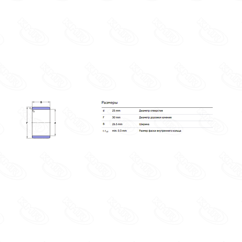 Название: Подшипник IR 25X30X26.5 (KMR), бренд KMR, страна производства Китай.
