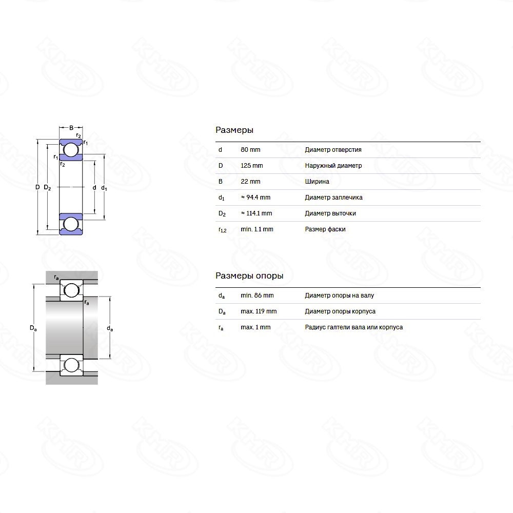 2RS1 - Стальное армированное контактное уплотнение из акрилонитрилбутадиенового каучука с обеих сторон подшипника.