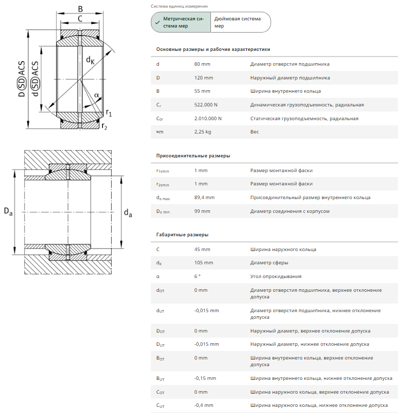 Внутренний диаметр этого подшипника составляет 80 миллиметров, что обеспечивает идеальную посадку на вал. Наружный диаметр - 120 миллиметров и ширина - 55 миллиметров, что делает его идеальным выбором для многих видов техники.