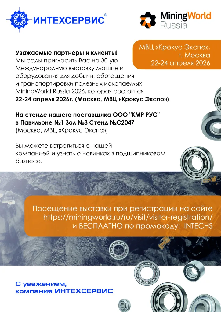 ИНТЕХСЕРВИС приглашает вас на MiningWorld Russia 2026 — встречу с инновациями в подшипниковом бизнесе!